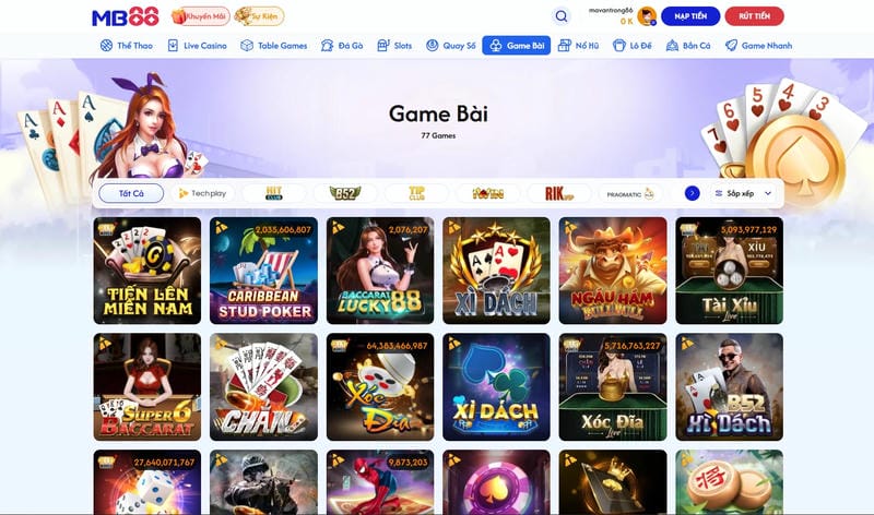 MB88 xây dựng một kho trò chơi cực kỳ phong phú, đáp ứng nhu cầu giải trí đa dạng của người chơi: